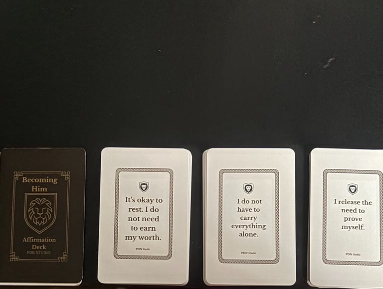 The Becoming Him deck encourages self-confidence, focus, and strength. Perfect for starting your day with purpose or finding your center in challenging moments.